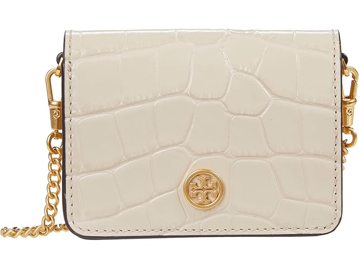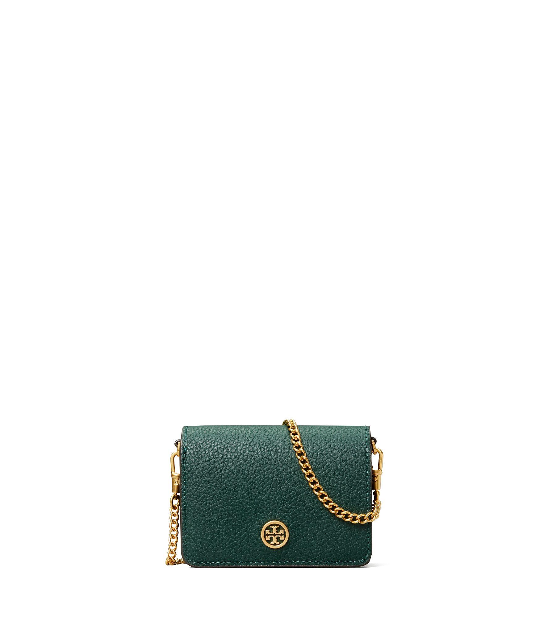Item information more from tory burch raise the style bar and carry the rich italian leather tory burch® walker nano wallet on chain featuring a detachable chain crossbody strap.